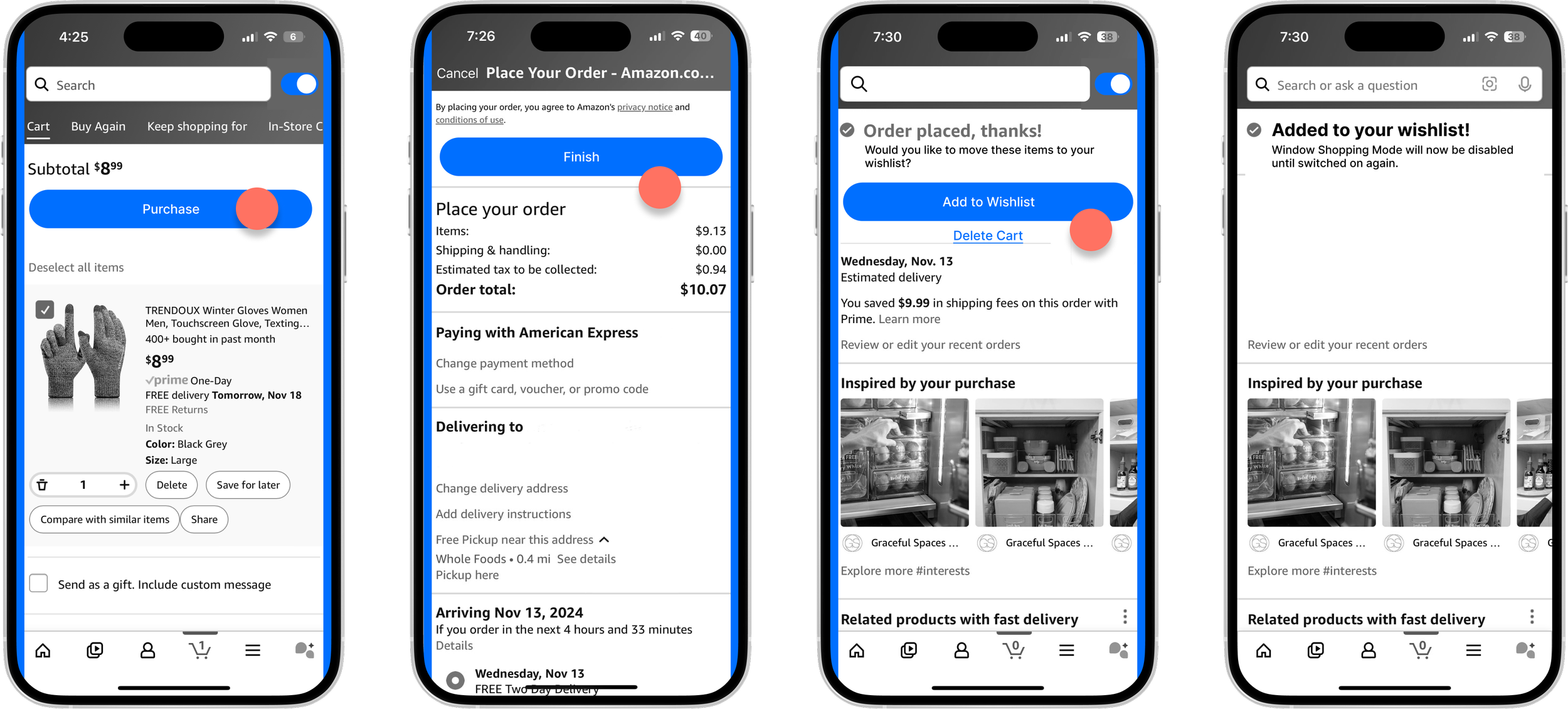 A feature concept for Amazon that deprioritizes cart additions in favor of wishlist-based browsing, giving users space to shop with more intention.